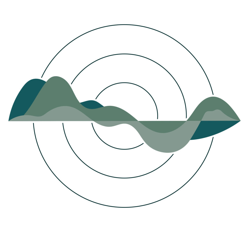 Cette représentation est intentionnelle pour évoquer l’idée que retrouver l’ouïe signifie également se reconnecter avec les sons de la nature. Les cercles concentriques autour du logo évoquent les ondes sonores qui se propagent, illustrant la transmission et la réception du son, deux éléments fondamentaux du métier d’audioprothésiste. Ces cercles évoquent aussi des ondes se propageant dans l’eau, enrichissant ainsi le symbole en suggérant l’idée de résonance, de calme et de connexion avec la nature.